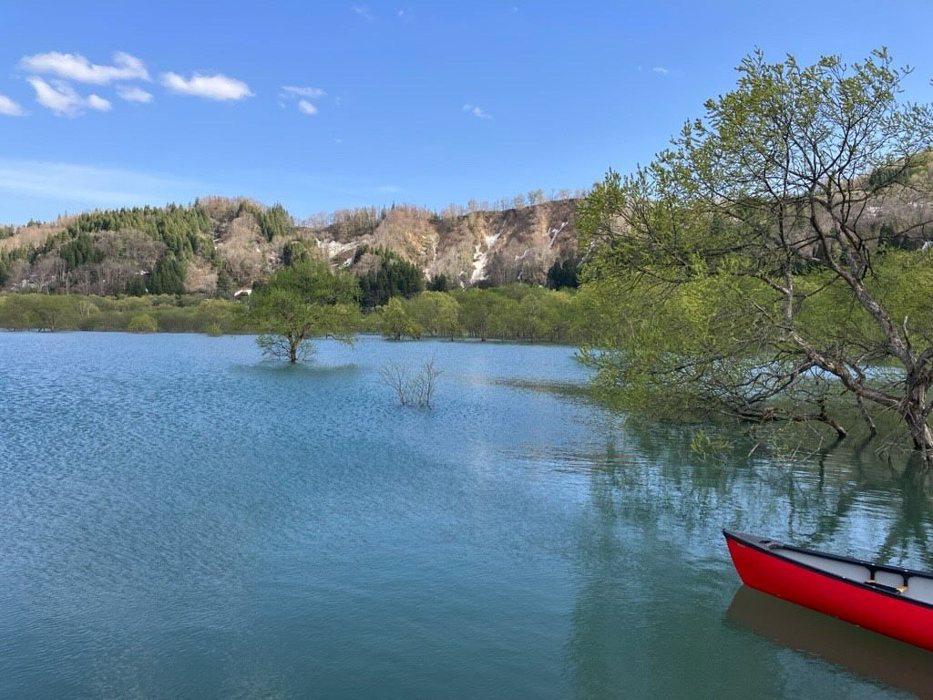 この水没林をみて、出羽屋で山菜を食べると、冬を乗り越えた生命の、なんとも瑞々しい迸りをかんじるものである。