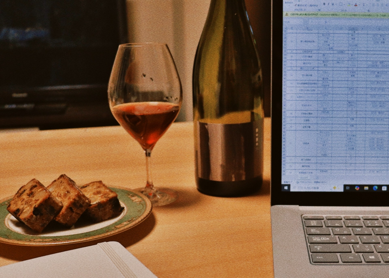 届いたばかりの日本ワインをグラスに落とす。